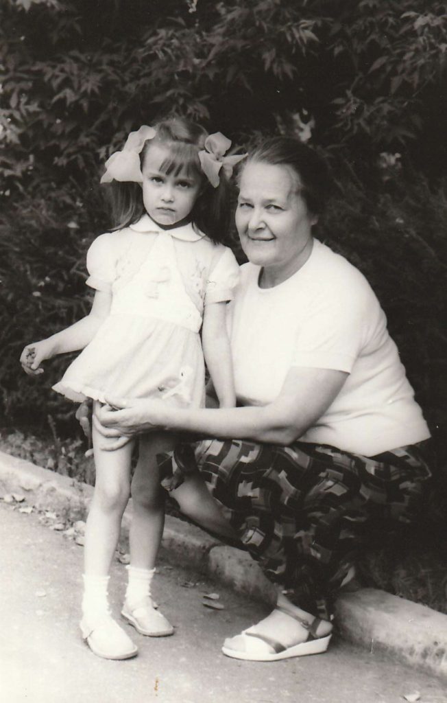Бабушка со своей мамой, моей прабабушкой Таней, конец 1990-х, Орловская областьФото: из личного архива Наконец, третий ресурс — собственная память. Я помню, как в глубоком детстве бабушка носила меня по комнате на руках, укачивая перед сном, а в окно заглядывала огромная, страшная луна, и я прижималась к бабушкиному ситцевому халату в цветочек, ища у нее защиты. Помню, как бабушка водила меня в парк кататься на аттракционе «Север»: я неслась по кругу на пластиковом олене, а она стояла за оградой и махала мне рукой. Помню, как мы вместе делали спиральки из картошки и жарили их в масле. Помню, как ходили к бабушкиному соседу дяде Юре, который разводил рыбок: у него было столько аквариумов, что они, поставленные друг на друга, занимали целую стену.
