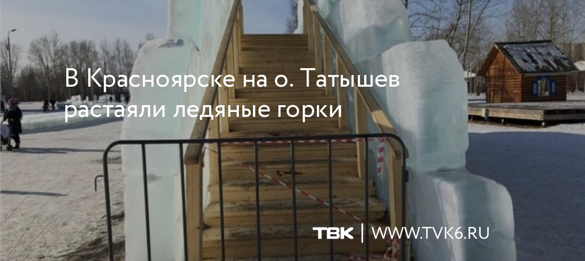 В связи с потеплением ледяные горки на восточной стороне о. Татышев в Красноярске закрыли. Их признали аварийными, оцепили и приступили к демонтажу других ледяных построек.