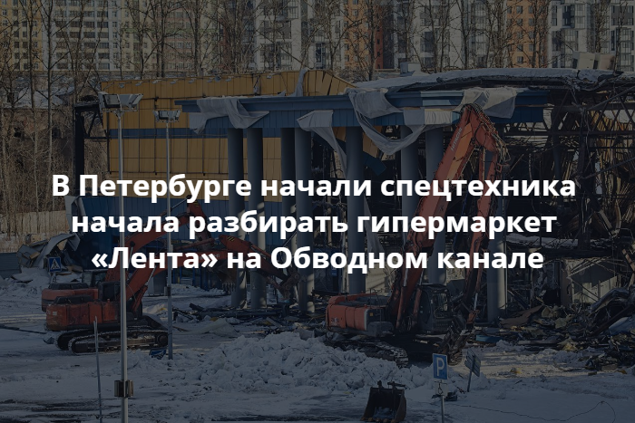 В Петербурге спецтехника демонтирует сгоревший гипермаркет «Лента» на Обводном канале, сообщает «Фонтанка».
