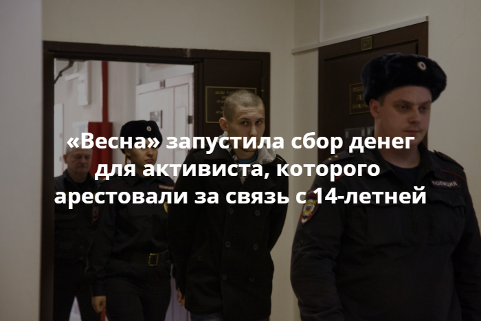 Молодежное демократическое движение «Весна» запустило сбор средств для активиста Владимира Казаченко, которого арестовали за связь с 14-летней. Об этом сообщается в группе движения во «ВКонтакте».