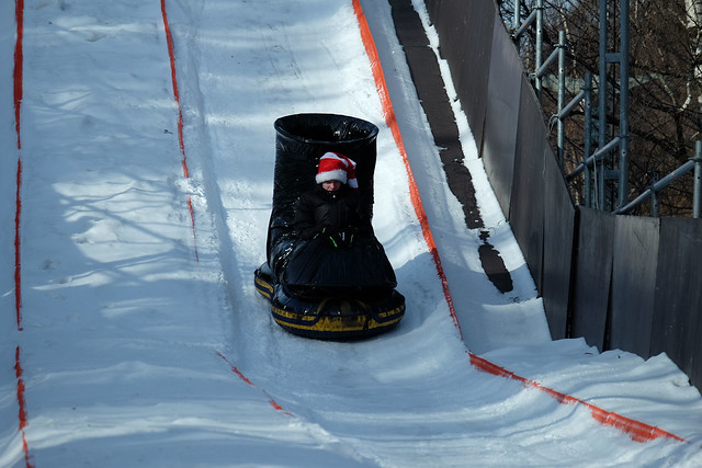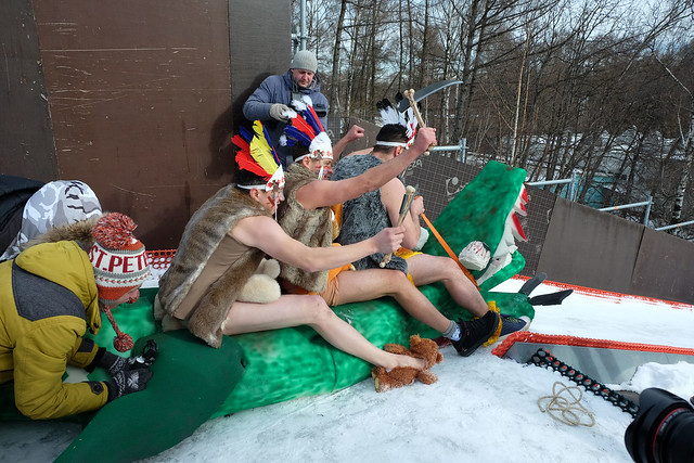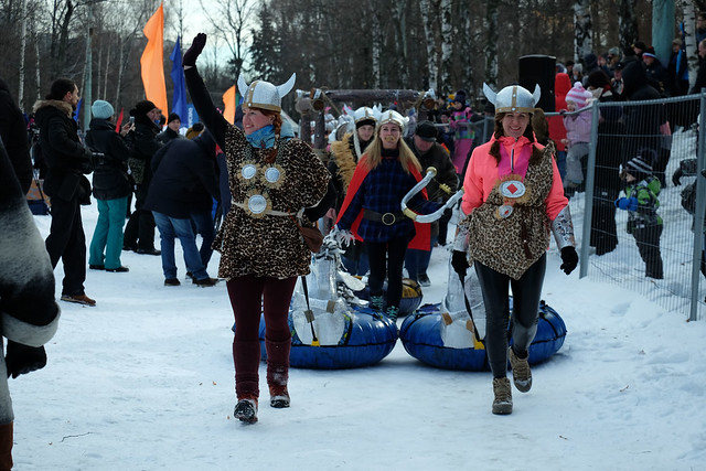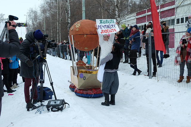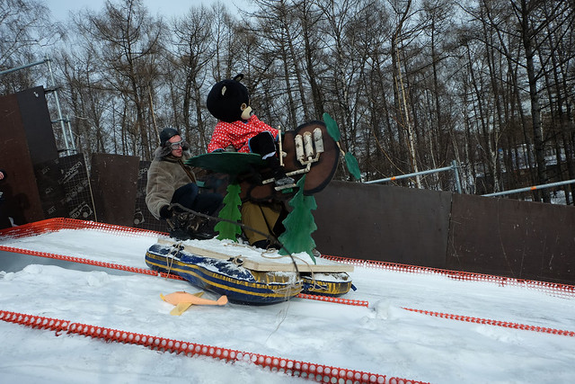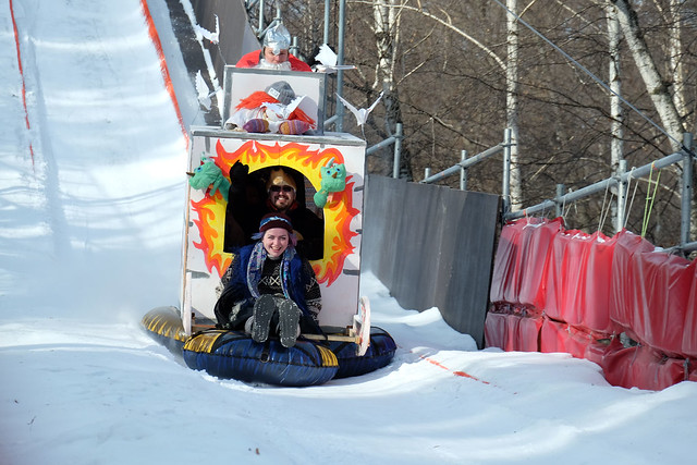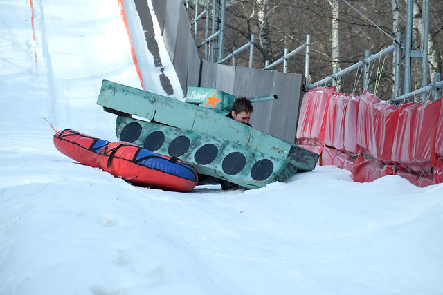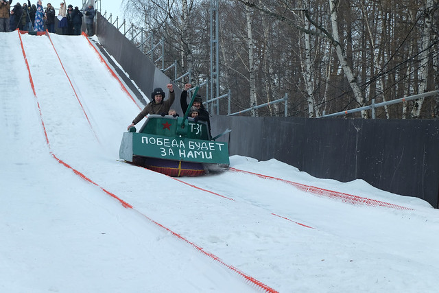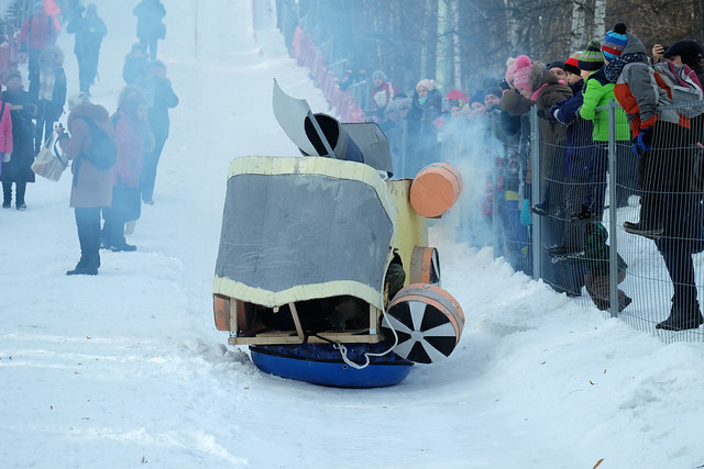 Перед конкурсом прошел заезд на "армейских" тазах, которые участники соревнования разукрасили баллончиками перед спуском. Владельцы оригинальных саней спускались по 200-метровой тюбинговой горке, а жюри оценивало дальность спуска, оригинальность санок и представление перед стартом.