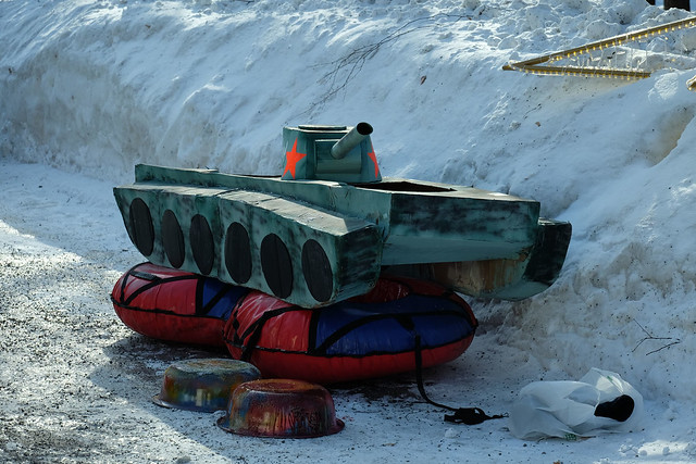 В московском парке "Сокольники" в День защитника Отечества прошел ежегодный фестиваль необычных самодельных саней "Battle сани". Темой мероприятия стала "военная классика": участники должны были смастерить санки, стилизованные под боевые машины любой эпохи. Так, одна из команд соорудила таран в форме бревна на колесах с металлической оковкой, сообщает сайт парка.