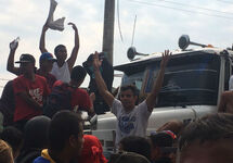По данным AP, на полпути к границе Венесуэлы силовики остановили три грузовика, которые сопровождали активисты во главе с депутатами. Военные облили бензином брезент, которым был накрыт груз, и подожгли. Активисты разгрузили горящие машины, образовали живую цепь и передали гуманитарную помощь назад в Колумбию.