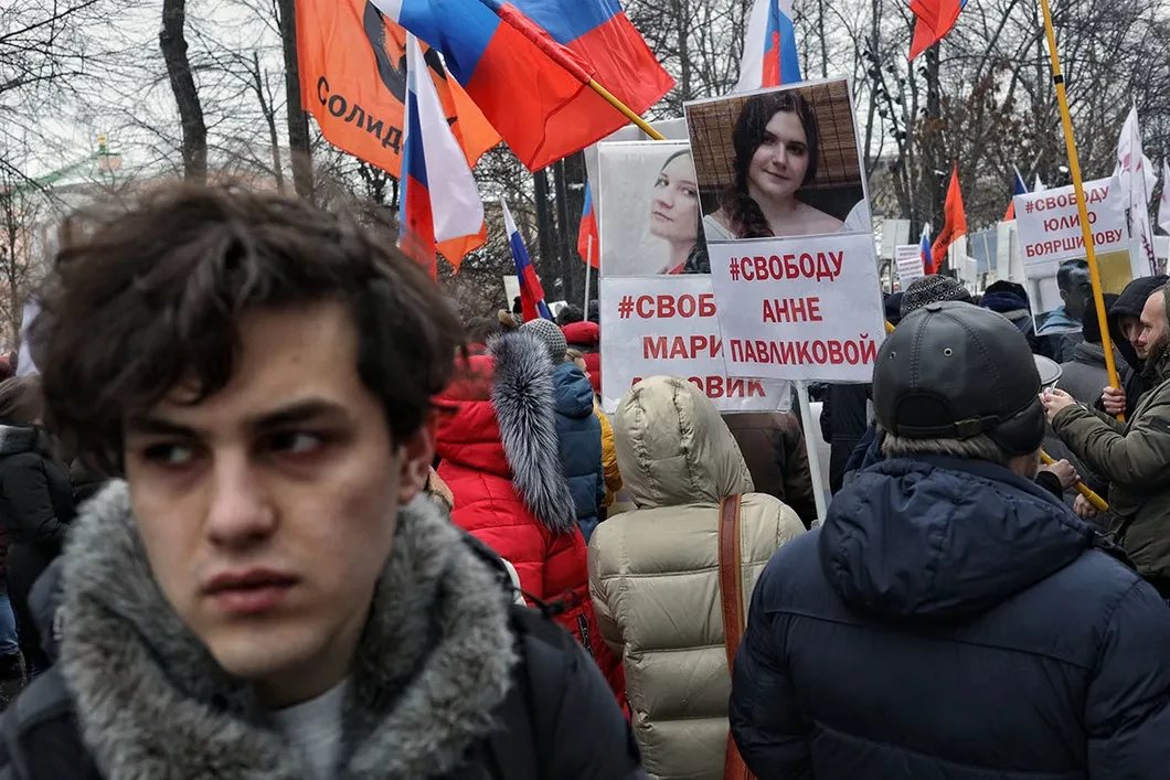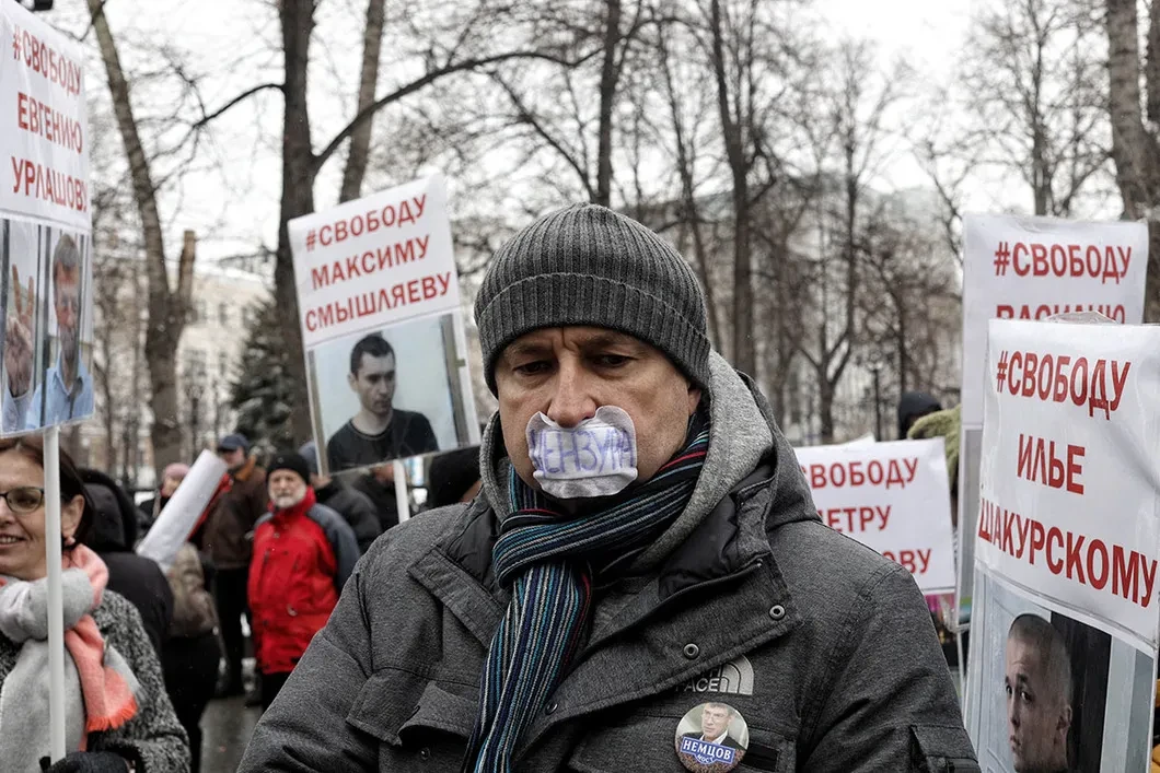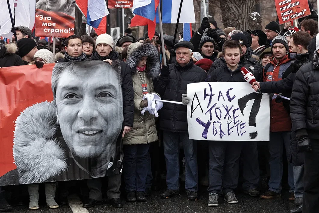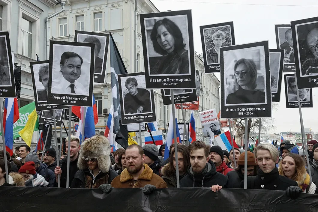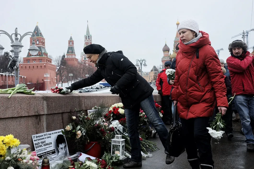 Участники марша на Страстном бульваре перед началом движения. Фото: Влад Докшин / «Новая газета»Участник марша, рот которого заклеен словом «цензура». Фото: Влад Докшин / «Новая газета»Участники митинга с плакатами в поддержку фигуранток дела «Нового величия» Анны Павликовой и Марии Дубовик. Девушки сейчас находятся под домашним арестом из-за обвинений в организаци экстремистского сообщества. Фото: Влад Докшин / «Новая газета»Первая колонна марша перед началом движения. Молодой человек справа держит плакат «А нас тоже убьете?». Фото: Влад Докшин / «Новая газета»Политик и соратник Бориса Немцова Илья Яшин на марше. В свой мегафон он выкрикивал «Долой власть чекистов!» и «Кадыров — убийца!» Фото: Влад Докшин / «Новая газета»Марш на Петровском и Рождественском бульварах. По данным Белого счетчика всего было 10,8 тысяч участников, МВД сообщило о 6 тысячах. Фото: Влад Докшин / «Новая газета»Политик Алексей Навальный с супругой Юлией и братом Олегом. Фото: Влад Докшин / «Новая газета»Колонна либертарианской партии с портретами убитых в России журналистов и общественных деятелей. Фото: Влад Докшин / «Новая газета»Участники марша кладут цветы к мемориалу Немцов мост. Проход к нему был затруднен из-за реконструкции. Сотрудники полиции не давали большому количеству людей там скопиться. Фото: Влад Докшин / «Новая газета»Мемориал у места убийства Бориса Немцова. Трагедия произошла 1458 дней назад. Фото: Влад Докшин / «Новая газета»