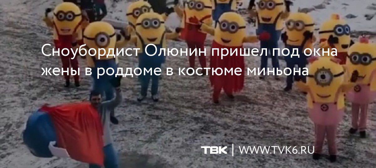 Сноубордист Олюнин пришел под окна жены в роддоме в костюме миньона