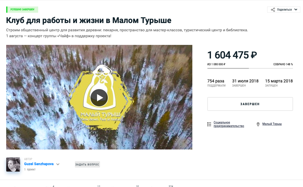 В июле 2018 года завершился уже пятый успешный крауд-проект основательницы медового бренда Coccobello Гузель Санжаповой. Она собирала деньги на строительство клуба для работы и жизни в деревне Малый Турыш, где и находится «штаб-квартира» Coccobello. Но только в этот раз предприниматель отказалась от привычных инструментов крауд-продвижения – социальных сетей и рассылок. Гузель Санжапова сделала ставку на офлайн-мероприятия.