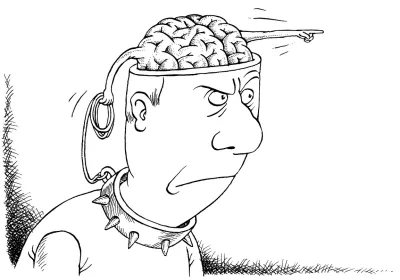 За формулировкой «Мозг заставляет меня…» стоит не всегда осознаваемое противопоставление человека и его мозга. Есть, получается, я и мой мозг, который мешает мне что-то делать. («О-о-о, мой мозг, поверить не могу!..») Задумаемся: кто тогда этот я, отдельный от мозга настолько, что мозг мне (моему «я») мешает? Плохому танцору мешают ноги, мне — мой мозг, я не дружен с головой. Но это не страшно. Из научно-популярных описаний нейроисследований мы узнаём: дело обстоит вот как — мозг уже принял решение, а я еще нет. Я могу вообще не знать, что он там решил, но это не важно — решает-то он. Мой мозг лучше меня понял происходящее и, помешав мне сделать глупость, тем самым мне помог. «Я у мозга дурачок» — несформулированный девиз этого направления. Мозг всё видит, слышит и понимает лучше, чем я. Вот и приходится ему мне мешать. Мучается, конечно, ужасно, с этой дополнительной и ненужной для решений нагрузкой.