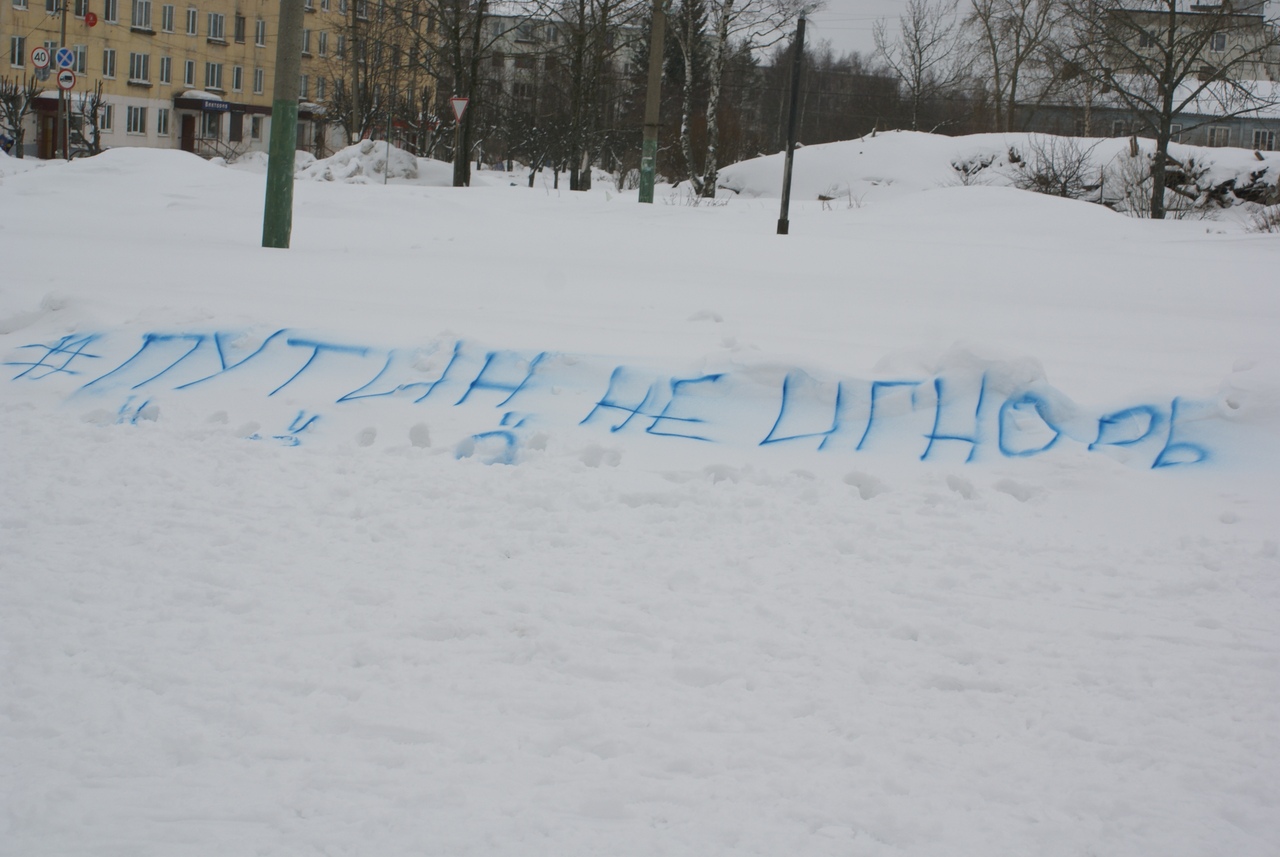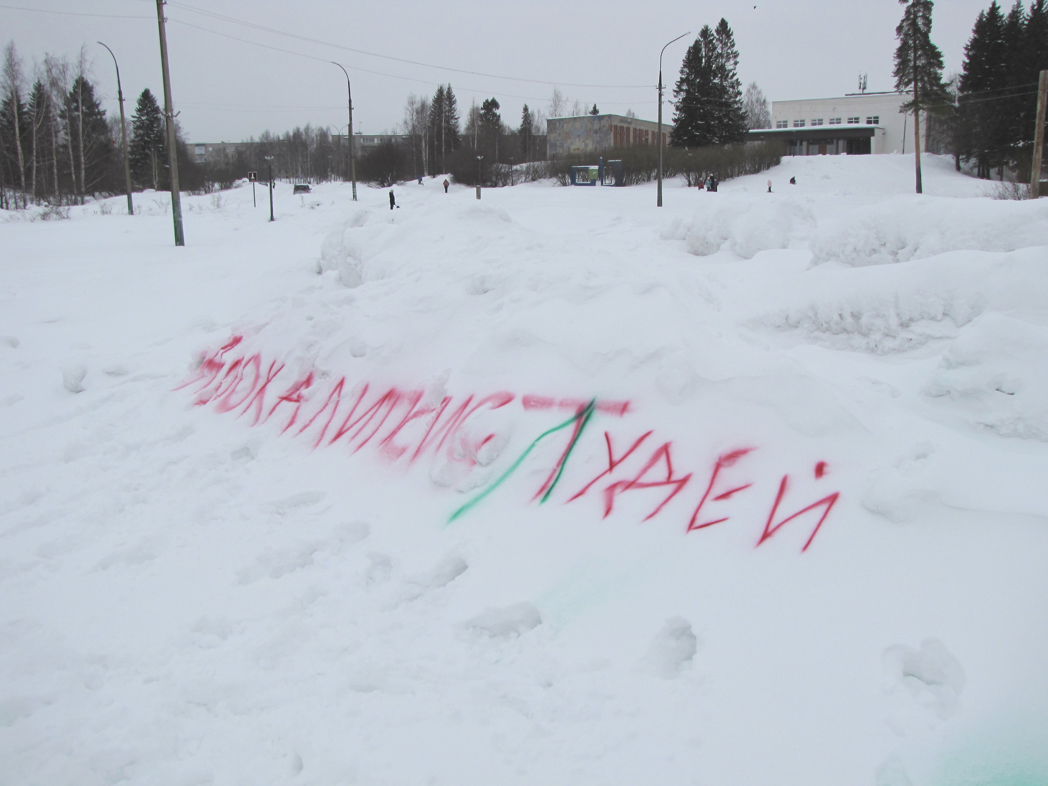 Для того чтобы страна, точнее, ее руководитель услышал жителей карельского городка, под конец прошедшей акции местные подростки вывели краской на снегу надпись: "Путин, не игнорь!" Правда, тут же сами усомнились в том, что президент это увидит и поймет.