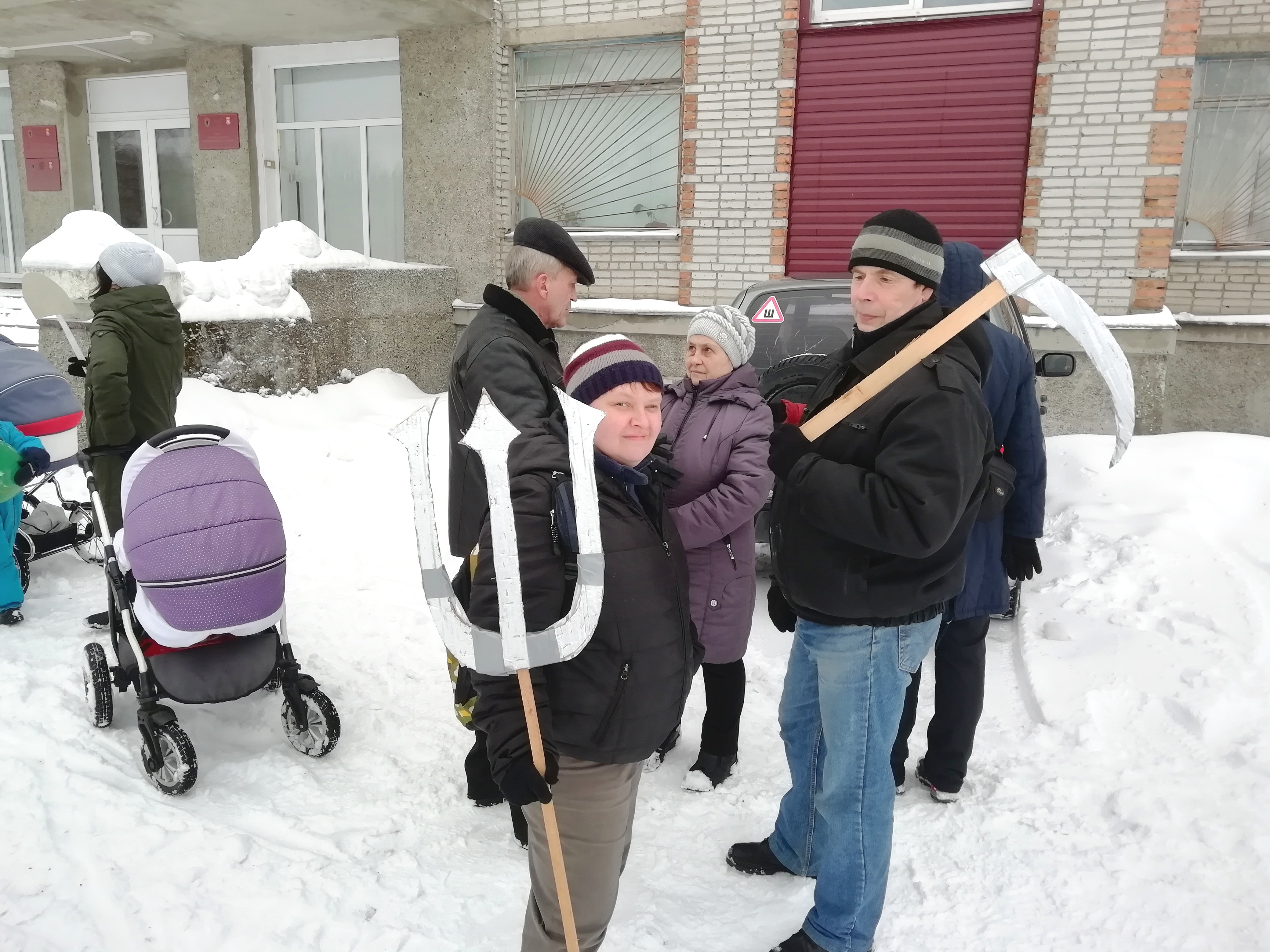 – Кто видел мой топор? – весело кричит Анна Бойкова возле здания администрации Питкяранты. В День защитника Отечества бойкая активистка с говорящей фамилией возглавляет полушуточное шествие-прогулку от здания закрытого Дома культуры до местной мэрии. Вместе с ней – около двадцати горожан, вооруженных картонными вилами, топорами, молотками, лопатами.