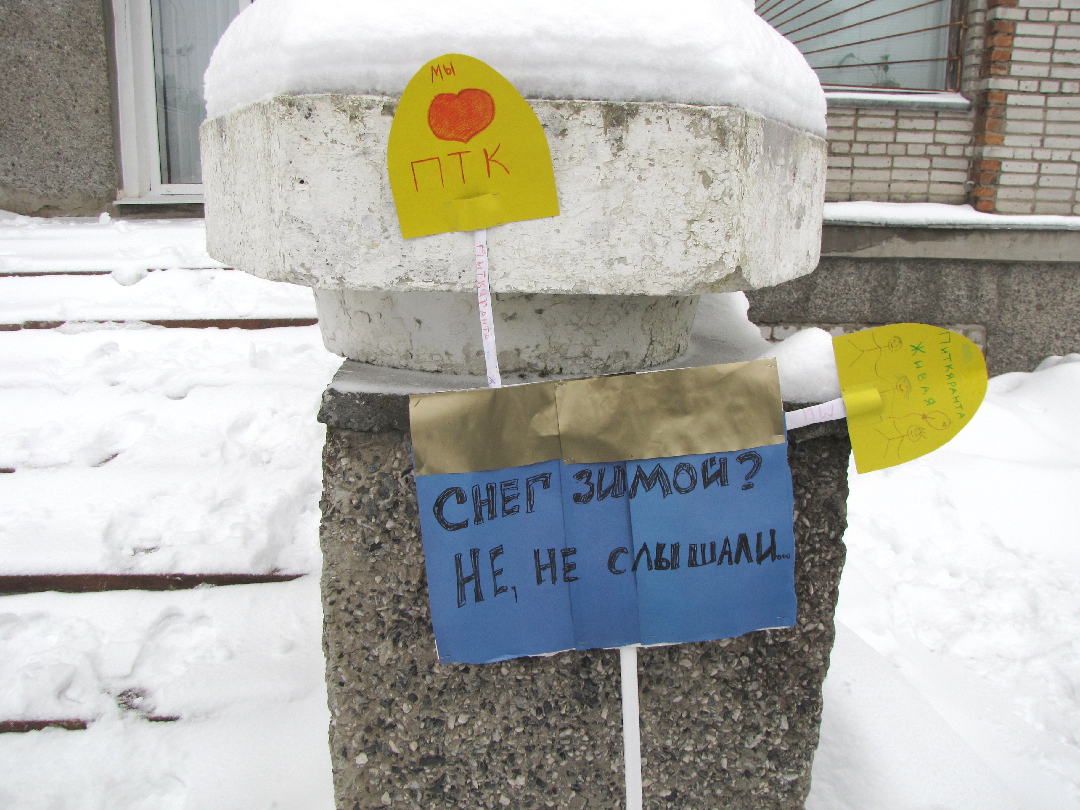 На протестной повестке – не только снег. Пришедшие на акцию жители жалуются на тотальную оптимизацию в районе. Летом 2018 года в городе с населением 10 тысяч человек ликвидировали родильное отделение больницы. Примерно в то же время закрыли Дом культуры (танцевальные коллективы даже не успели выступить с отчетными концертами). Сейчас власти заявили о планах закрыть филиал колледжа профобразования, работавший в Питкяранте долгие годы. Местные юноши и девушки могли, не уезжая из родного города, получить специальности электромонтера, автомеханика, продавца. Теперь им предлагают учиться за 200 километров в Петрозаводске или за 60 километров – в соседней Сортавале, однако далеко не все семьи хотят и могут отправить ребенка в другой город.