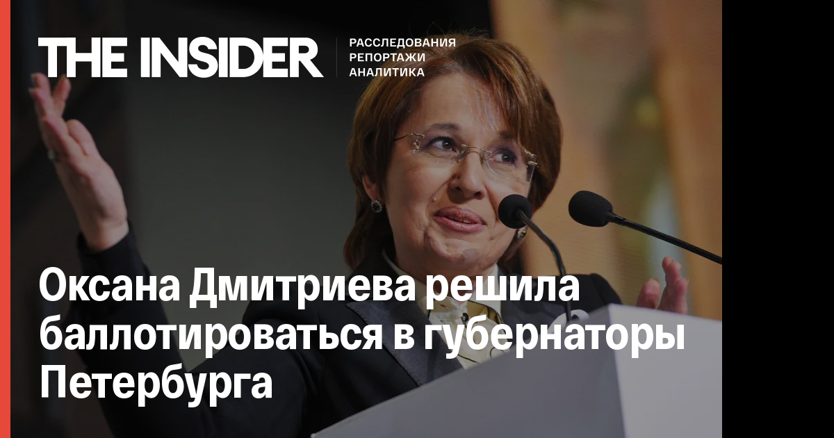 «Я готова участвовать в выборах губернатора Санкт-Петербурга, готова к честной конкурентной борьбе. У меня есть уверенность, что, в случае победы, я смогу эффективно руководить таким крупным мегаполисом, как Санкт-Петербург, даже в том чрезвычайно сложном состоянии, в котором город сейчас оказался», — заявила Дмитриева.