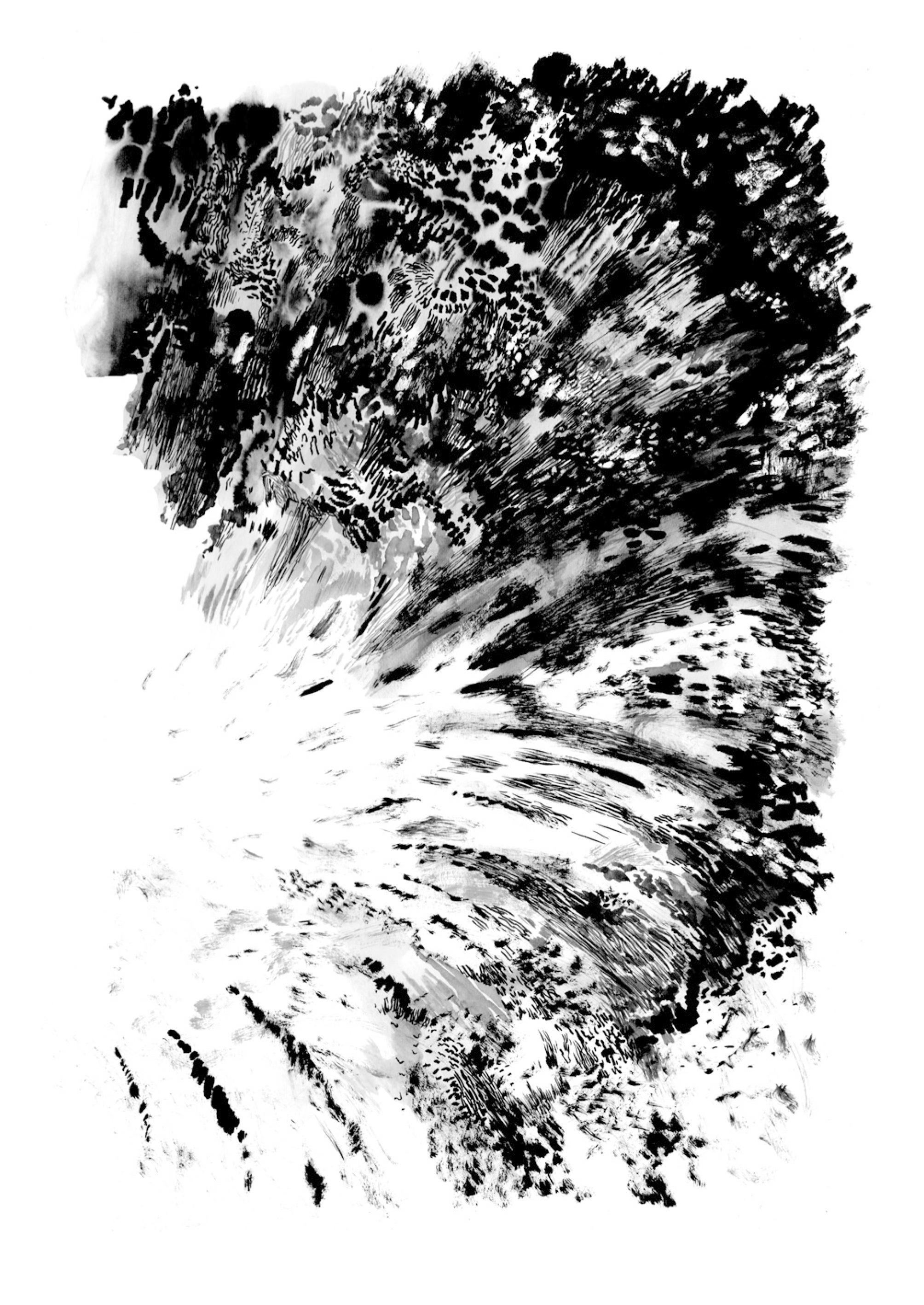 Работая над визуальной частью, я анализировала стилистику произведений того времени: советских фильмов, плакатов наглядной агитации, газет, книг, фотографий. Создавала эскизы, искала подходящий визуальный язык. В качестве техники я выбрала рисование кисточками с использованием полутонов, также рисовала по мокрой бумаге, использовала расплывающиеся очертания и полупрозрачную тушь — чтобы показать неравномерность воспоминаний. Какие-то эпизоды в памяти бабушки остаются яркими, четкими, другие расплываются.