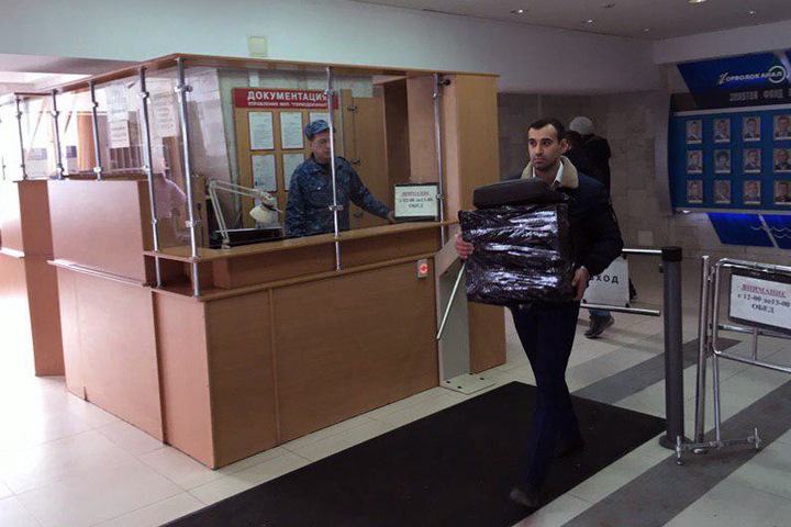 Микроавтобус, куда оперативники грузили документы и технику, покинул место.