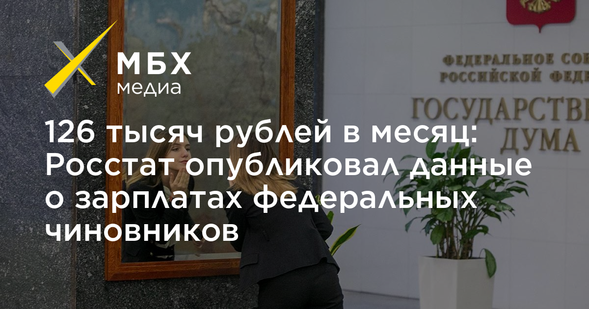 126 тысяч рублей в месяц: Росстат опубликовал данные о зарплатах федеральных чиновников