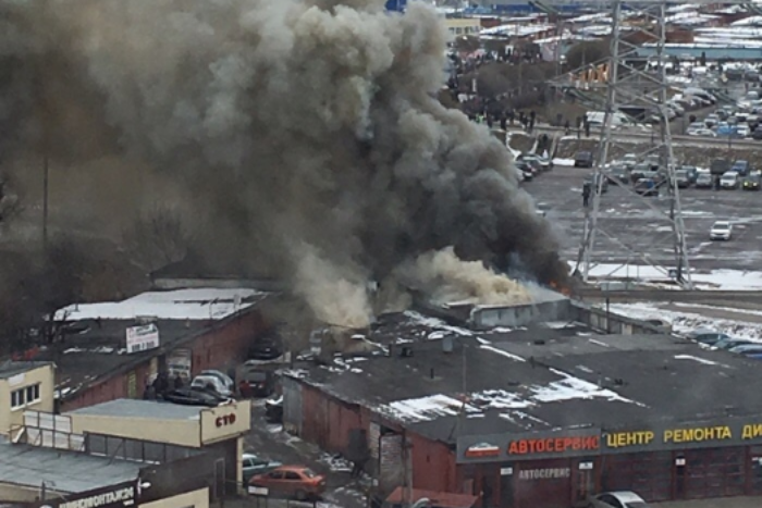 На улице Маршала Казакова горел автосервис. Дым было видно за несколько километров