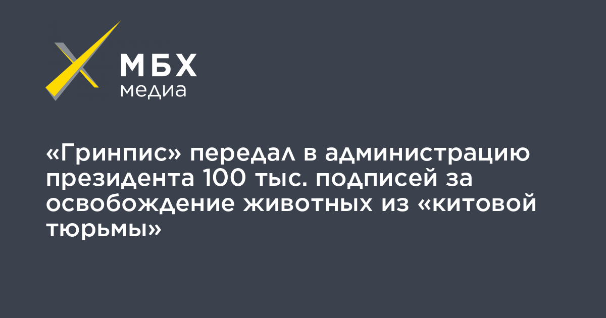 Российское отделение «Гринпис» передало в администрацию президента 100 тысяч подписей под требование освободить животных, содержащихся в «китовой тюрьме» в Приморье, сообщается на сайте организации.