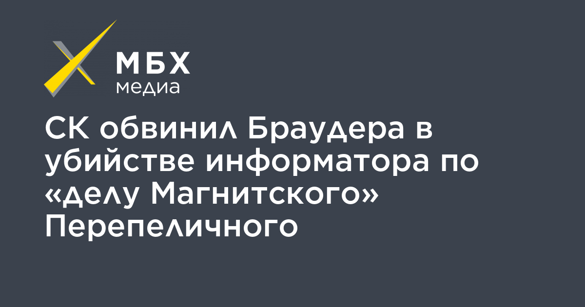 «Следственный комитет России официально обвиняет меня в убийстве российского осведомителя Александра Перепеличного в Суррее в 2012 году. Их обвинение тесно связано с объявлением в конце прошлого года предложения ЕС по “акту Магнитского”», — написал Браудер.
