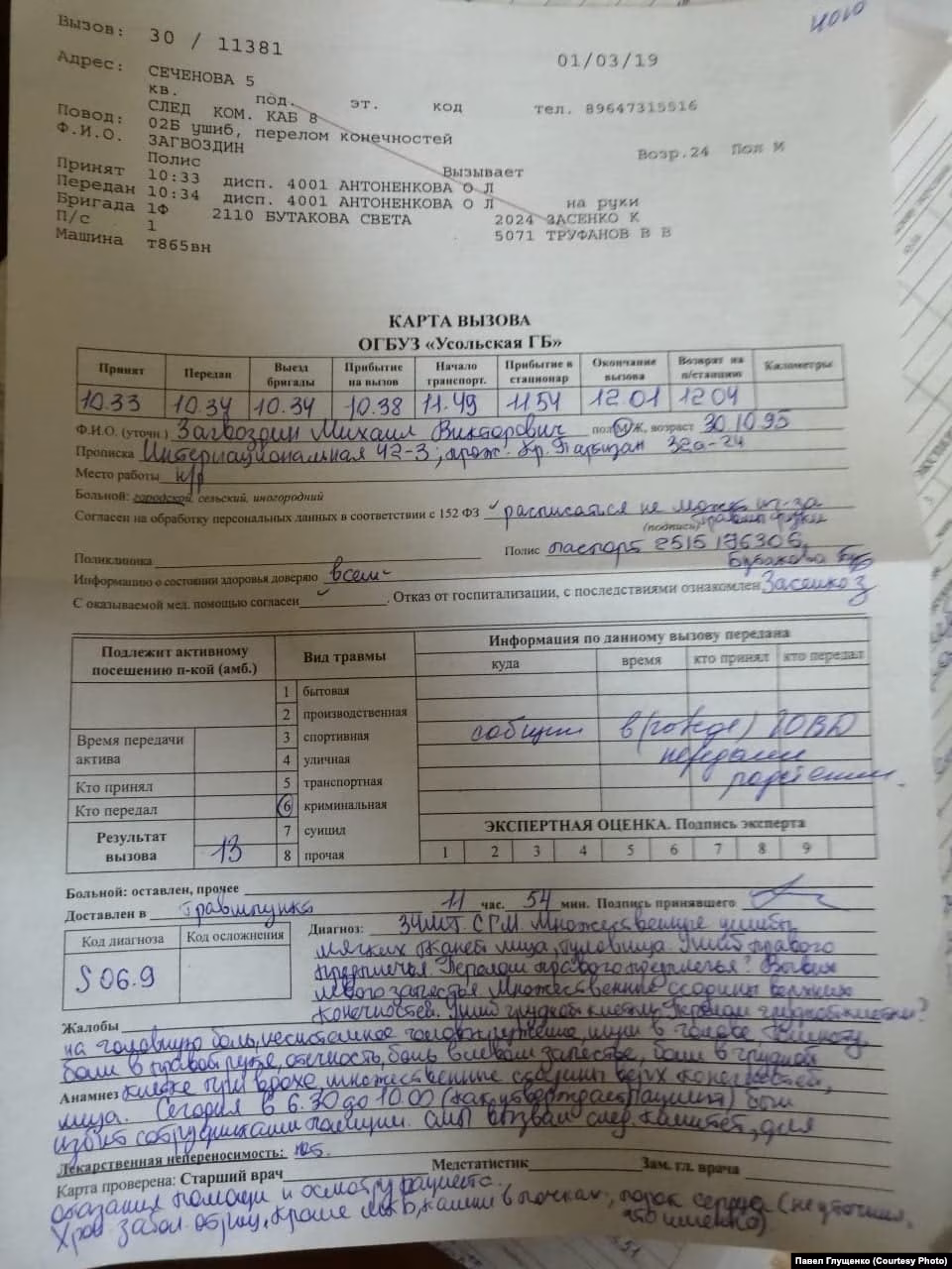 "И я удивляюсь, почему Загвоздина не госпитализировали, у него такой список травм, что ему нужно в реанимации лежать как минимум. Ему делали непрямой массаж сердца в Следственном комитете, ему становилось плохо, его возили в центральную районную больницу", – сказал Глущенко.