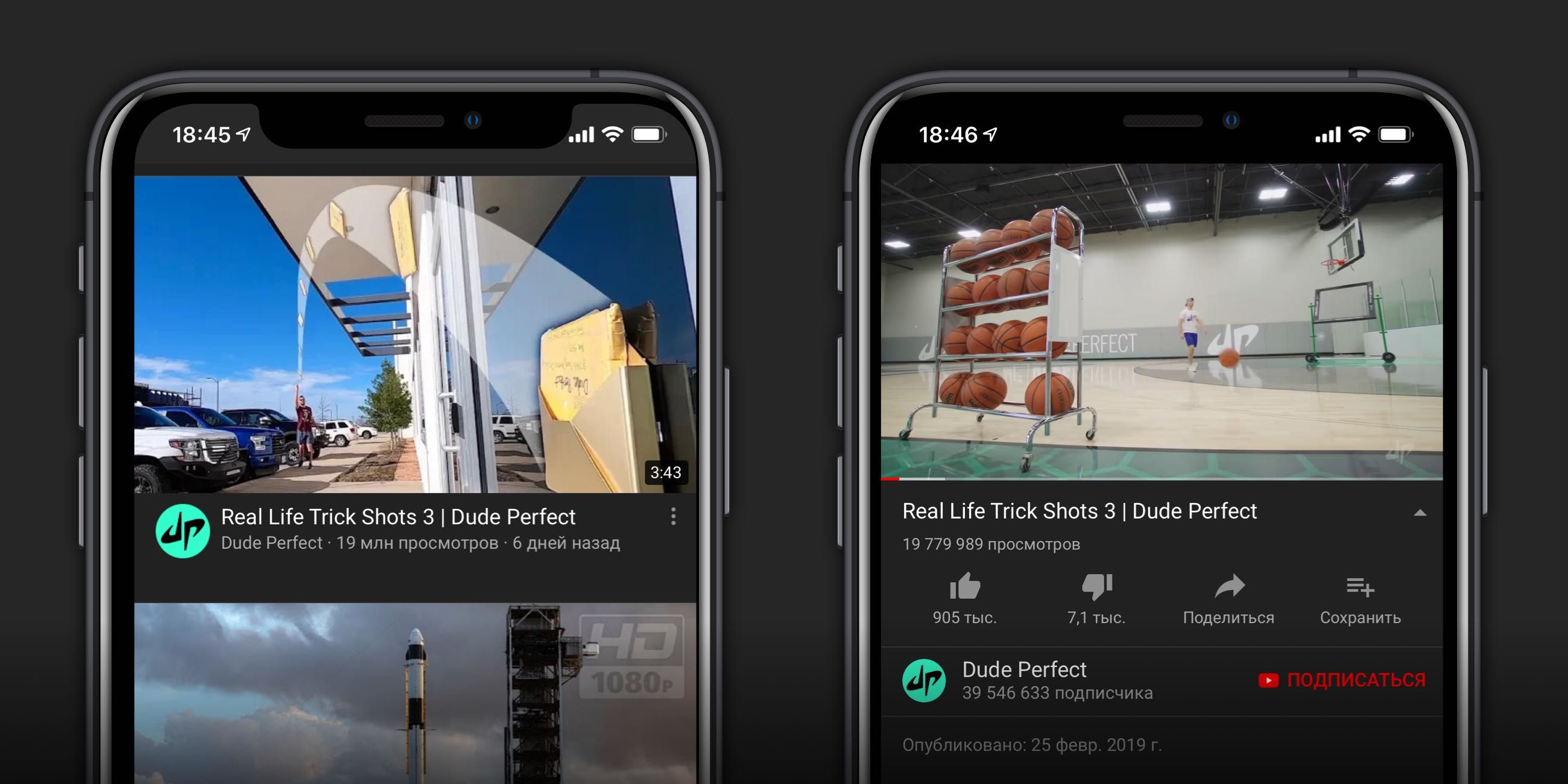 Темное оформление YouTube смотрится настолько хорошо, что стандартное светлое после него кажется чужеродным. Чтобы его включить, нужно нажать на свой аватар в верхнем правом углу приложения, затем перейти в настройки и включить пункт «Ночной режим» (на Android он спрятан в меню «Общие»).