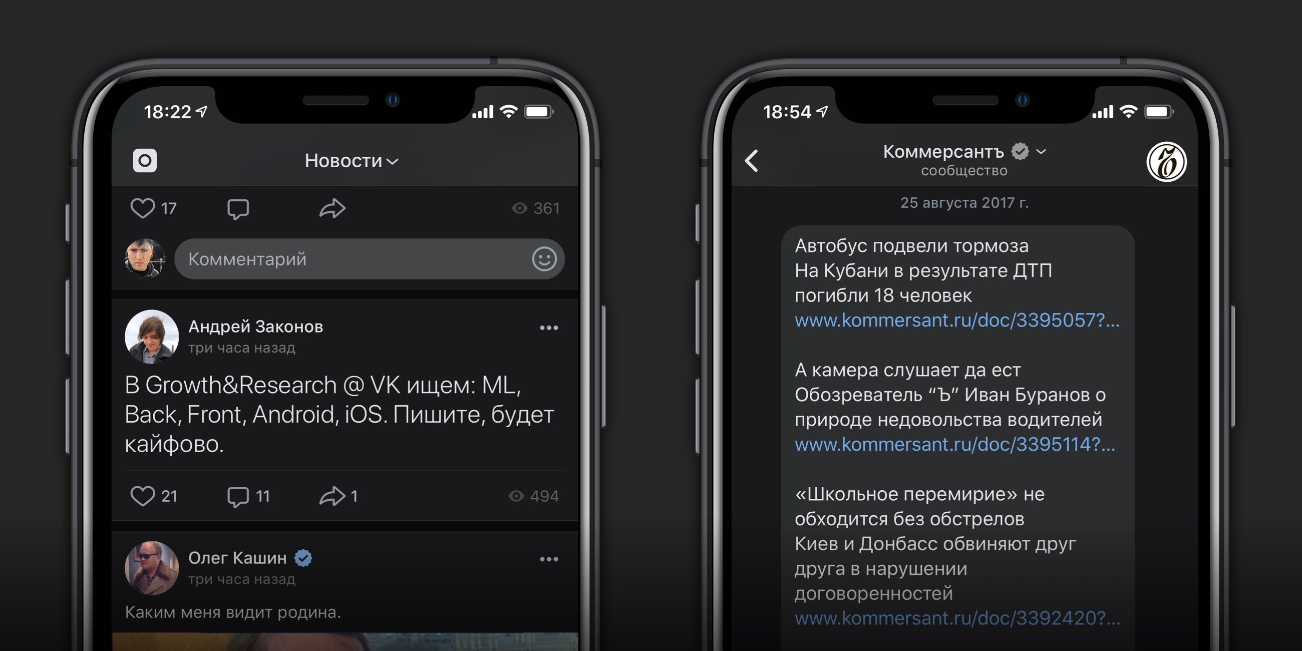 Темное оформление появилось в приложении ВК для iOS в октябре 2018 года. Компания пообещала, что ночную тему позже добавят и в Android-приложение, но пока этого не произошло.