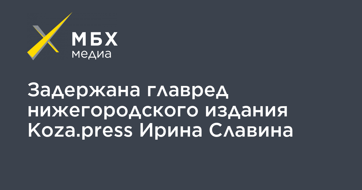В Нижнем Новгороде сотрудники полиции задержали главного редактора местного издания Koza.press Ирину Славину, об этом она сообщила «МБХ медиа».