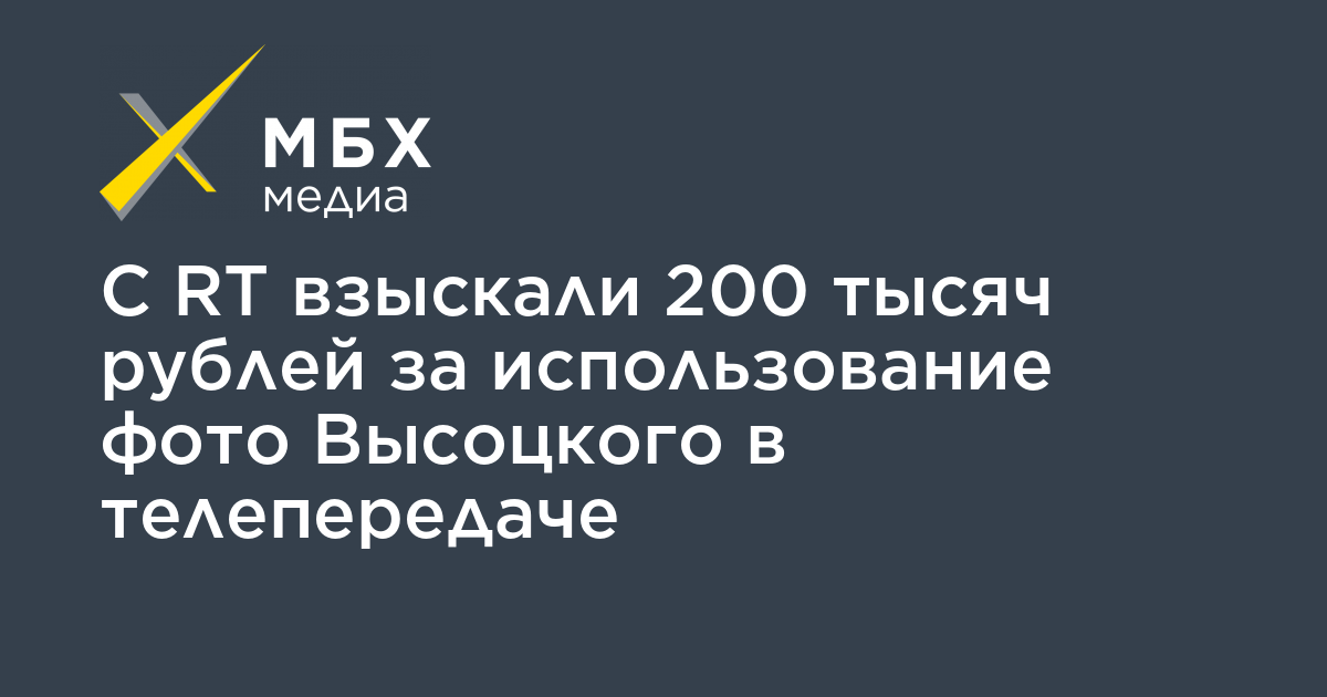 Арбитражный суд Москвы постановил взыскать с телеканала Russia Today 207 тысяч рублей за использование фотографии Владимира Высоцкого в телепередаче с нарушением авторских прав. Решение суда опубликовано в картотеке арбитражных дел.