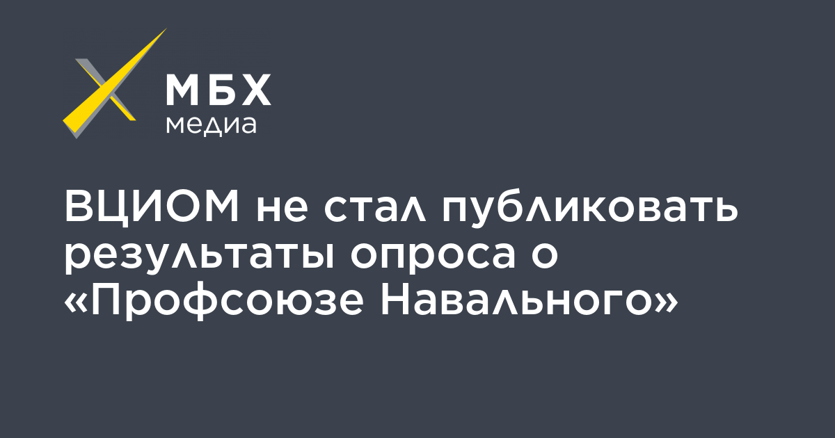 ВЦИОМ не стал публиковать результаты опроса россиян о проекте «Профсоюз Навального». Об этом пишут «Ведомости» со ссылкой на человека, попавшего в выборку ВЦИОМ, а также источник в организации.