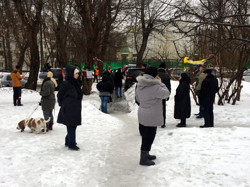 Жители Останкинского района Москвы 5 марта организовали стихийную акцию протеста против вырубки сквера на улице Цандера и строительства на его месте 20-этажного жилого дома по программе реновации.