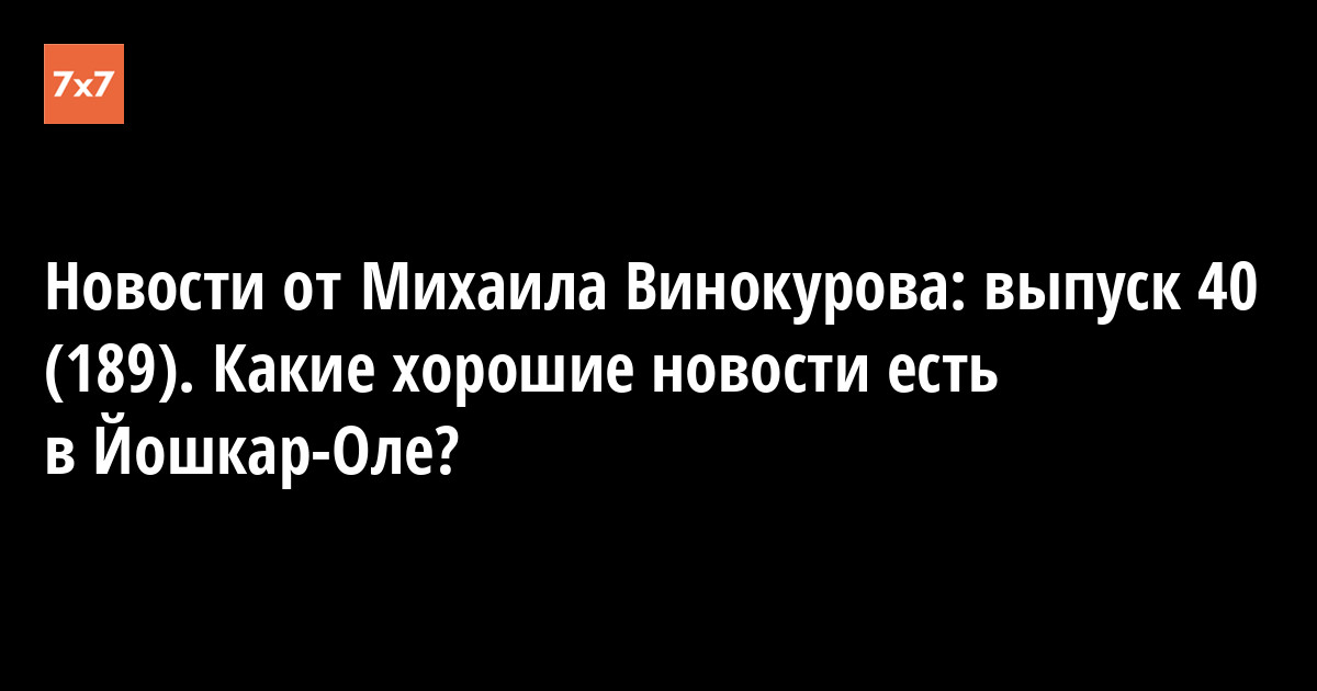 Новости от Михаила Винокурова: выпуск 40 (189). Какие хорошие новости есть в Йошкар-Оле?