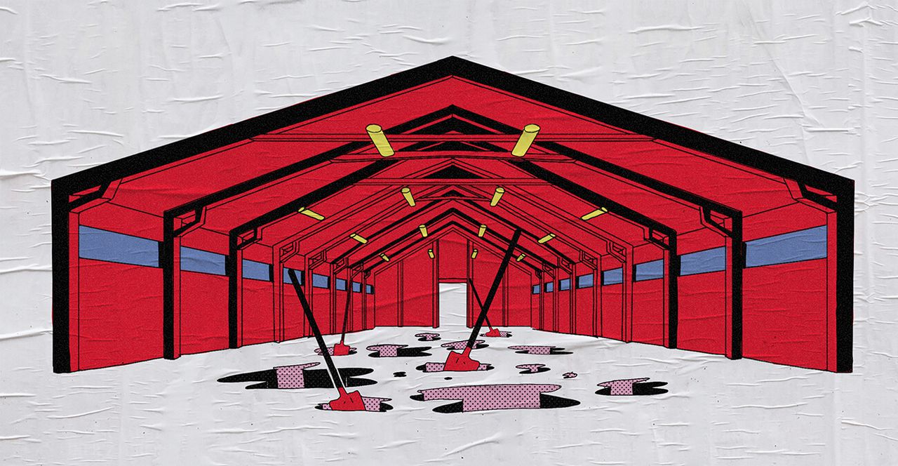 Обычно работа начинается в семь — значит, с постели нужно встать около половины шестого утра. Собравшись в сквозном ангаре, сонные рабочие по двое становятся к нагромождениям балок, стопкам фанеры, трубам или заполненным железками боксам. Снаружи на сотни метров вокруг во внушительные стопки сложено всё то же самое. Ходить по коридорам из опалубки и деталей для строительных лесов лучше осторожно: между рядами на бешеной скорости ездят погрузчики, которые здесь все называют «карами». О погибших под их колёсами нам ничего не известно, но перспектива такой смерти кажется более чем реальной.