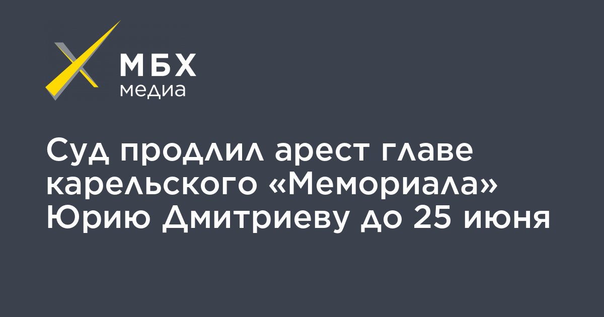 Суд продлил арест главе карельского отделения «Мемориала» Юрию Дмитриеву до 25 июня 2019 года, об этом сообщил «МБХ медиа» его адвокат Виктор Ануфриев.
