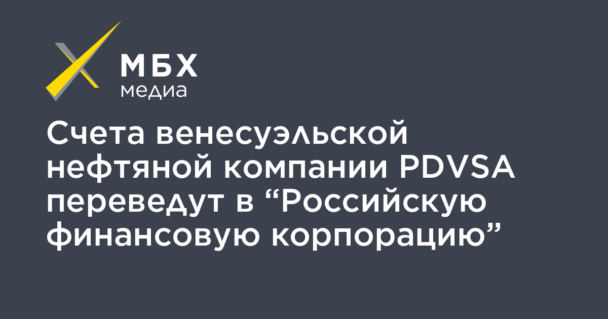 Счета некоторых венесуэльских компаний в России, в том числе нефтяной госкомпании PDVSA, переведут в банк «Российская финансовая корпорация» (РФК). Об этом сообщает РИА Новости со ссылкой на два источника, знакомых с ходом переговоров.