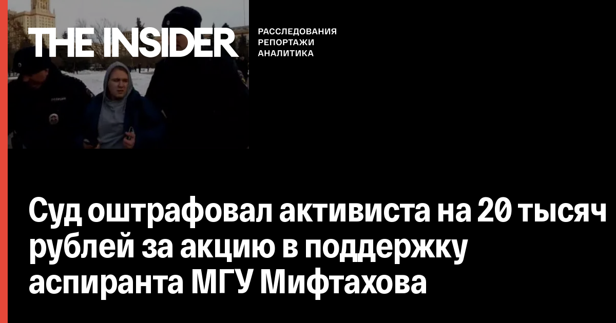 Суд оштрафовал активиста на 20 тысяч рублей за акцию в поддержку аспиранта МГУ Мифтахова