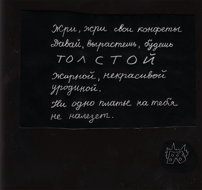 — Я хочу, чтоб ты знала, что я больше так не буду, — ещё раз сказала мама, — но я забочусь о твоём здоровье. Тебе нужно следить за собой. Толстые люди никому не нужны, вот увидишь. Людям вообще никто не нужен.