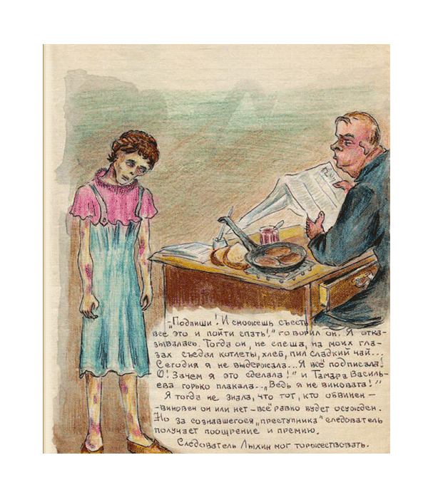 В 6 утра — подъем; в 10 вечера — отбой. Днем нельзя ни лечь, ни прислониться, ни повернуться спиной к волчку (даже если ночью во сне повернешься — разбудят и заставят вновь повернуться к нему лицом). Допросы обычно по ночам. Весь день ждешь прихода ночи. И не только. Ждешь раздачи хлеба и кипятка, ждешь оправки, визита врача, прогулки, обеда. Но ни на минуту не забываешь, что наступит ночь и с ее наступлением допрос, который иногда длится от отбоя до подъема.