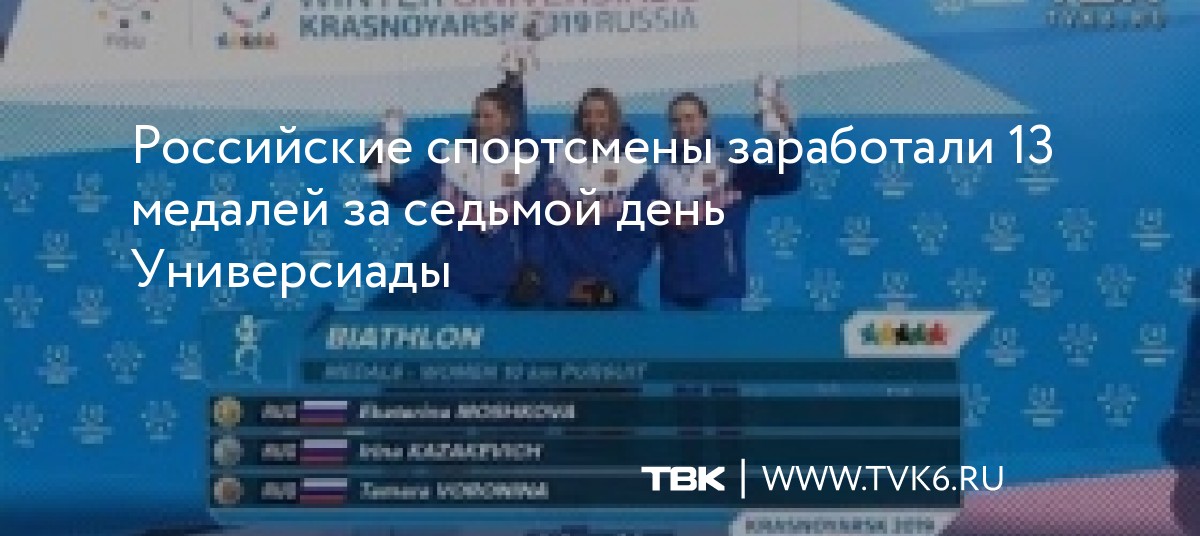За неделю Универсиады в Красноярске российские атлеты принесли сборной 71 медаль: 23 – высшей пробы, 26 серебряных и 22 бронзовых. Мы на первом месте в командном зачете, на второй строчке корейцы (12 медалей), замыкают тройку Швейцария с шестью медалями на счету. 8 марта будут разыграны еще 7 комплектов.