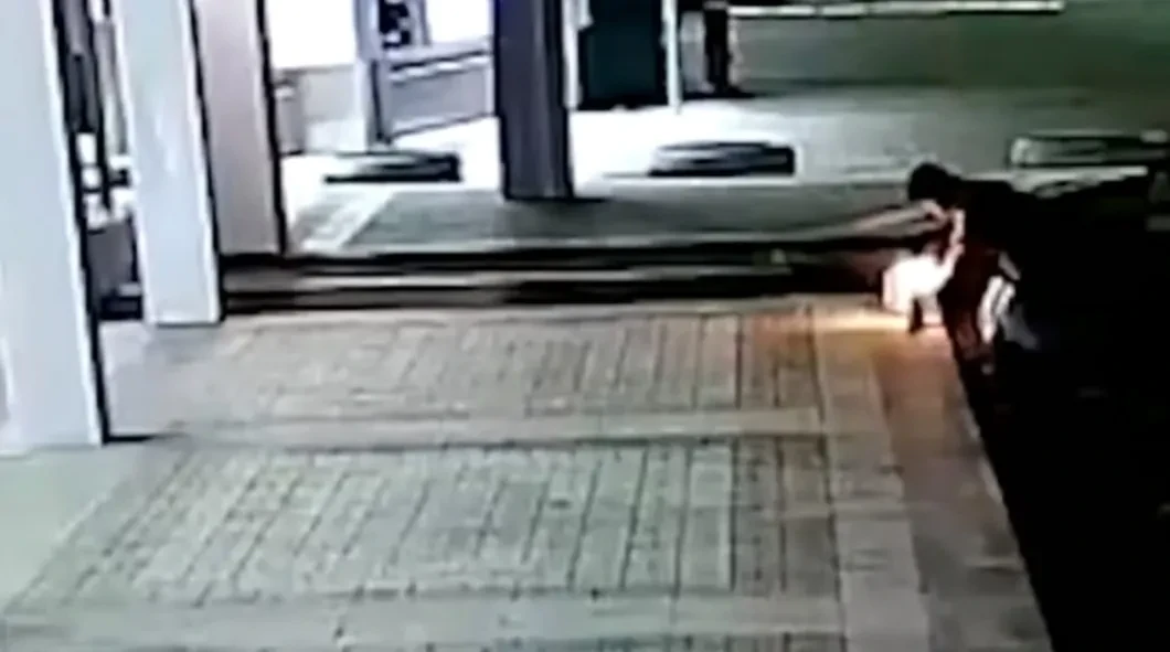 Человек, бросивший «коктейли Молотова» в администрацию Красноярска, полного полицией по случаю приезда Путина. Кадр видео
