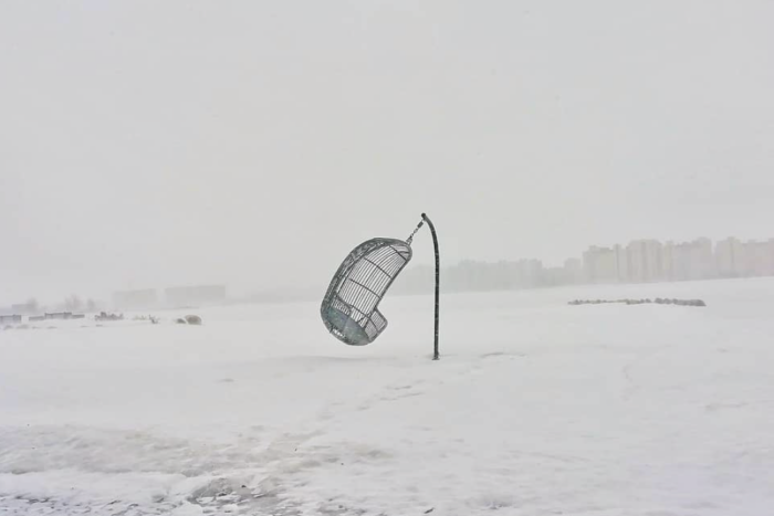 Прорывающиеся сквозь ветер кареты в центре города, аттракционы на Крестовском во мгле, занесенные снегом Дворцовая площадь и Троицкий мост: «Бумага» собрала фотографии стихии из Instagram.