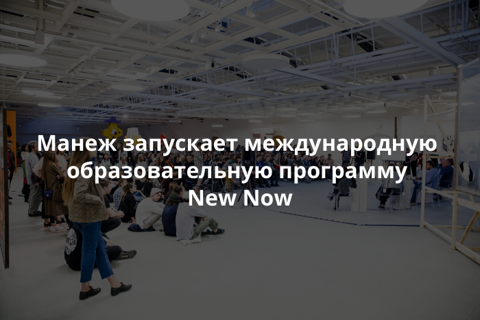 В Манеже запускают международную образовательную программу «New Now в Манеже». До конца года пройдет не менее восьми встреч с деятелями культуры из США, Великобритании, Финляндии, Германии и других стран.