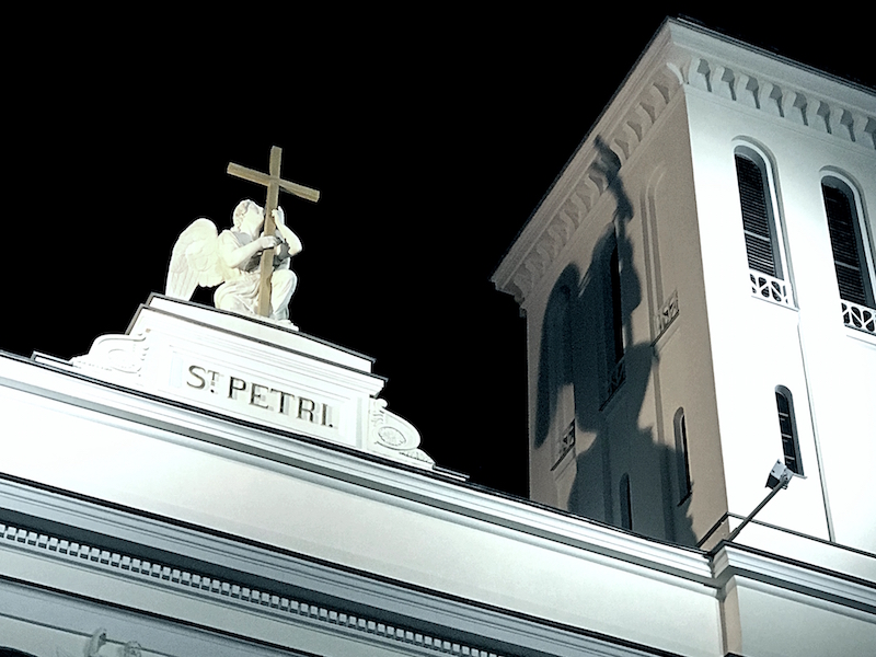 Когда в Петербурге на день рождения «Независимых гидов» собиралась часть нашей команды, программа была, как обычно, культурная: всегда договариваемся, на какую выставку или в какой музей пойдем все вместе и кто что позже посетит по интересам, чтобы за вечерним столом обогатить веселую компанию своими впечатлениями. За зиму мы побывали в Исаакие, Казанском соборе, Генштабе, Музее религии, Макете Россия, Петропавловской крепости и Александро-Невской лавре. Но случайное посещение лютеранской церкви святых Петра и Павла на Невском проспекте, знаменитой Petrikirche, так засело в голове, что расскажу отдельно. Погодка была так себе, вечерело, холодало, мы зашли погреться с любознательными целями, но когда зашли, сразу влились в бесплатную экскурсию, которую проводил немец, хорошо говоривший на русском. Он говорил так просто и душевно, что мы присоединились «чуть послушать» и втянулись. С первого этажа мы пошли в казематы церкви — обычный подвал, сводчатые потолки, ничего необычного. В подвале — модное нынче art-пространство, мастерские, склады. Естественно, что у немцев денег на реставрацию такого объекта нет, а государство помогает, как известно, только истинно-кремлевско-верующим.