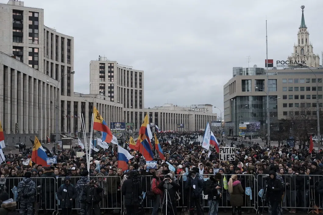 «Дождь» сообщил о задержании мужчины во время акции. По информации& «Белого счетчика» на 14:45, в акции участвуют 9,2 тысячи человек,& «толпа за рамками визуально не уменьшается».