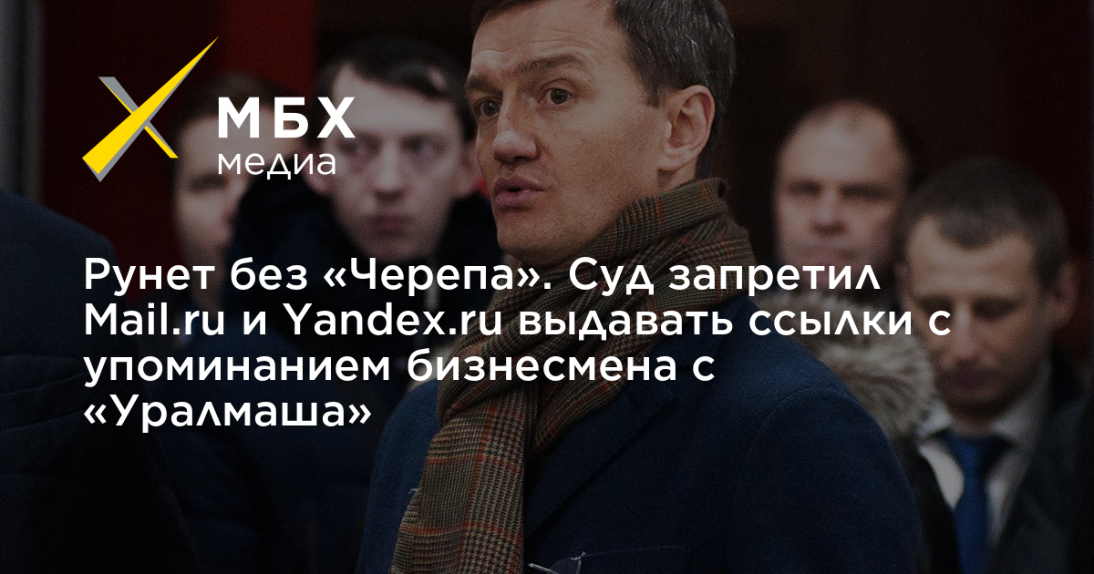 Рунет без «Черепа». Суд запретил Mail.ru и Yandex.ru выдавать ссылки с упоминанием бизнесмена с «Уралмаша»