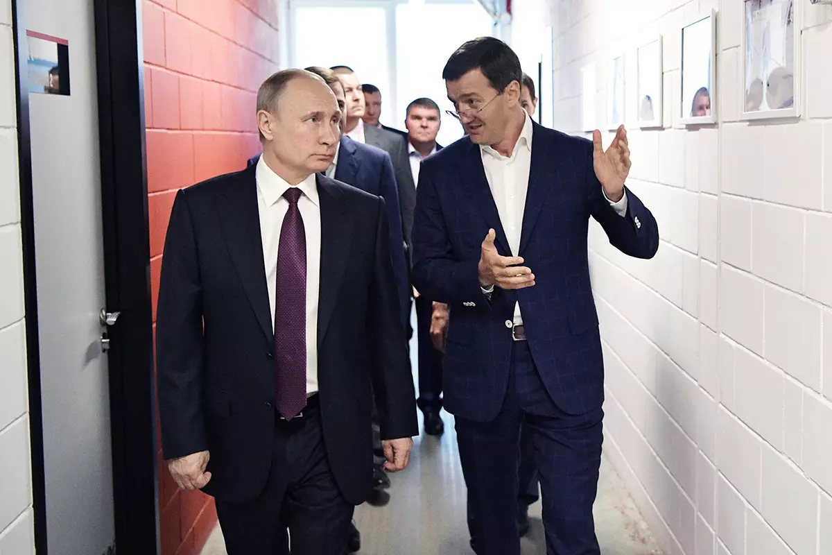Владимир Путин и Олег Черепанов во время посещения спортивного комплекса «Дацюк арена», 2017 год. Фото: Алексей Никольский / пресс-служба президента РФ / ТАСС