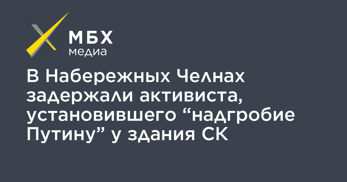 В Набережных Челнах сотрудники правоохранительных органов задержали местного активиста Карима Ямадаева, который установил инсталляцию в виде могилы президента Владимира Путина у входа в здание Следственного комитета (СК), об этом «МБХ медиа» сообщил правозащитник Рузиль Мингалимов.