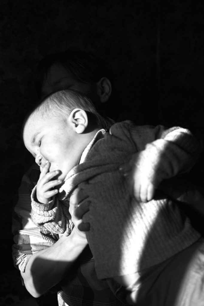 Лена и НикитаФото: Лиза Жакова для ТД Тогда она пришла к нам в фонд пьяная и беременная Славой. О фонде ей рассказали в районном центре помощи семье и детям. До беременности Лена вообще никогда в своей жизни не видела младенцев. И отчаянно боялась того, что не сможет даже просто взять ребенка на руки так, чтобы ему не навредить. В фонд Лена пришла с вопросом: «Что мне делать, если я боюсь детей?» Мы позвали беременную Лену ходить на наши группы поддержки для мам с малышами. Там Лена впервые увидела младенцев и других мам, которые справляются. Рожать Славу было уже не так страшно. Я тогда еще не работала в фонде, поэтому мучаю социального работника Дашу: