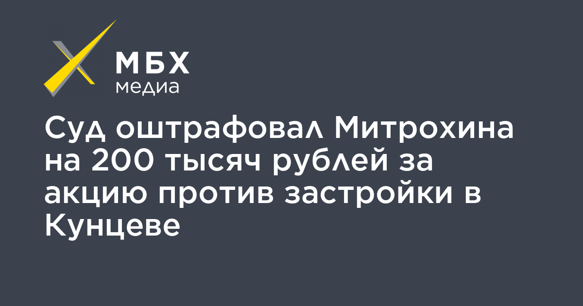 Кунцевский районный суд Москвы оштрафовал на 200 тысяч рублей бывшего главу московского отделения партии «Яблоко» Сергея Митрохина за акцию против застройки района компанией ПИК 18 ноября 2018 года. Об этом он рассказал «МБХ медиа».