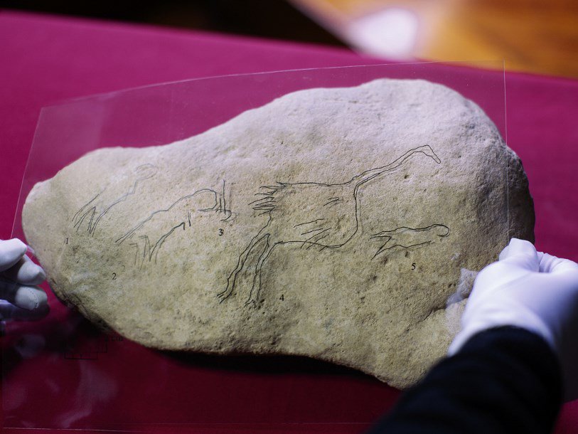 Редкий пример палеолитического искусства представили ученые из Барселонского университета, Каталонского исследовательского центра ICREA и Университета Севильи. На фрагменте камня можно увидеть вырезанные древним художником фигуры людей и птиц, образующие единую композицию.