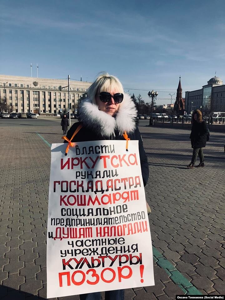 Основательница частного музея кукол из прибайкальского поселка Листвянка, оштрафованная за нецелевое использование собственной земли, вышла сегодня в Иркутске на пикет к зданию областной администрации. Об этом редакции "Сибирь.Реалии" сообщила сама коллекционер Оксана Токмакова.