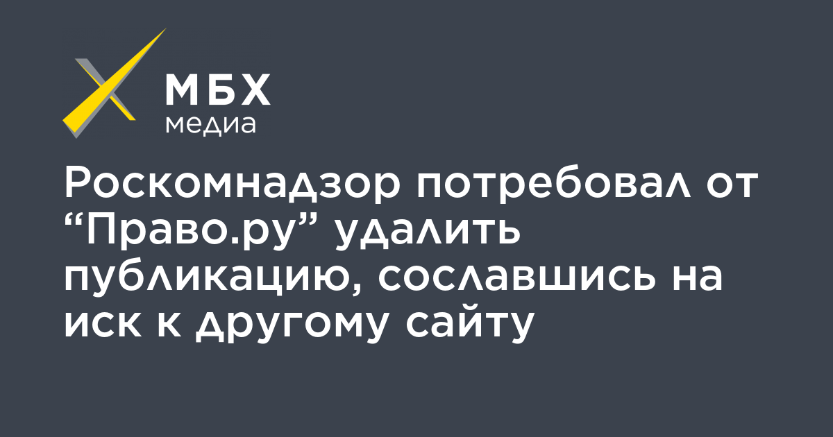 Роскомнадзор потребовал от “Право.ру” удалить публикацию, сославшись на иск к другому сайту