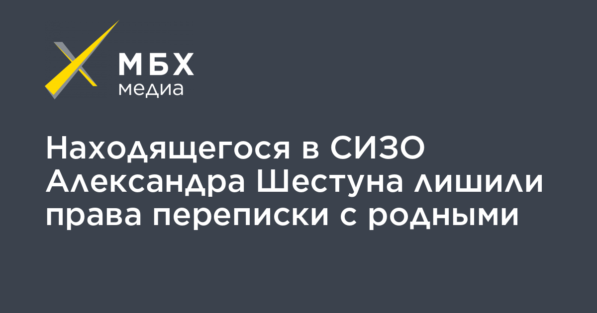 Находящегося в СИЗО Александра Шестуна лишили права переписки с родными